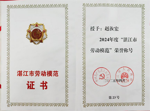 4月27日,湛江市委、市政府召開2025年湛江市慶祝“五一”國際勞動節(jié)大會,為進一步弘揚勞模精神、勞動精神、工匠精神,為湛江跨越式、高質(zhì)量發(fā)展廣泛匯聚智慧和力量,根據(jù)《中共湛江市委湛江市人民政府關(guān)于表彰湛江市勞動模范、先進工作者和先進集體的決定》,會上表彰湛江市勞動模范、先進工作者和先進集體。其中,我司趙汝宏同志榮獲湛江市勞動模范稱號。