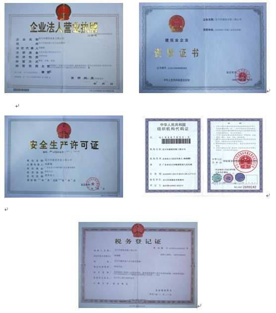 企業(yè)法人營業(yè)執(zhí)照;資質證書;安全生產許可證;組織機構代碼證;稅務登記證: