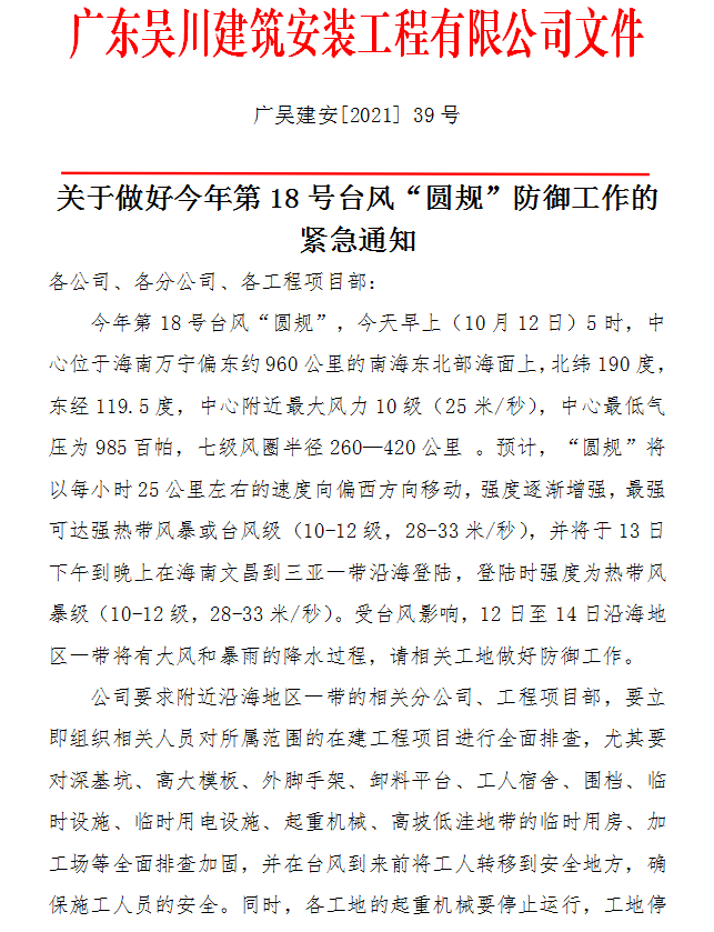 關(guān)于做好今年第18號臺風(fēng)“圓規(guī)”防御工作的緊急通知