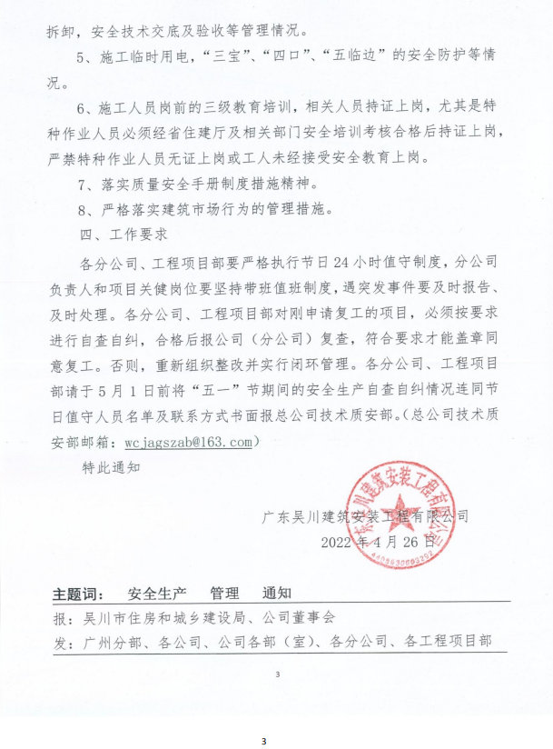 關于切實做好“五一”國際勞動節(jié)期間安全生產(chǎn)管理工作的通知